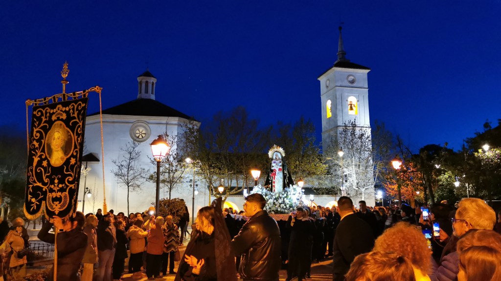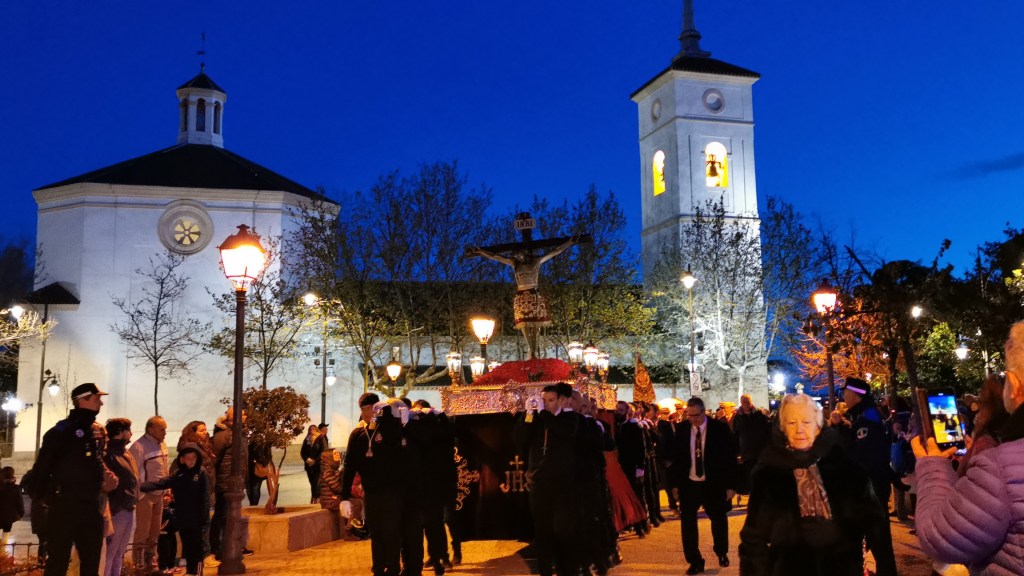 Majadahonda amaneció con un lluvioso y frio Viernes Santo, día en el que se conmemora la Crucifixión y Muerte de Jesús de Nazaret, y en el que estaba programado el regreso a su ermita del Santísimo Cristo de los Remedios en compañía de su madre la Virgen de la Soledad a las 19:30 horas desde la Parroquia de Santa Catalina Mártir. A la hora indicada desde el Cielo llegó una bendición y una penitencia, dejó de llover pero se mantuvo el frio.