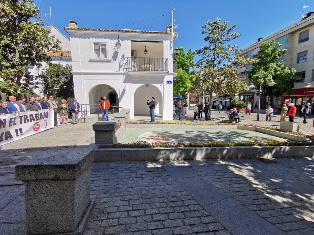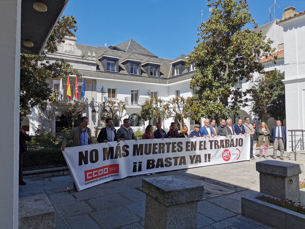 Ayer a las 12:00 horas CCOO convocó una concentración ante la Plaza del Ayuntamiento de Majadahonda por el accidente mortal del trabajador del pasado lunes 16 de Abril en la depuradora de este municipio. Acto que fue secundado con su presencia por los concejales de VOX, PSOE, VECINOS POR MAJADAHONDA, e IU-Mas Madrid, algunos de los cuales sujetaron la pancarta con las siglas de los dos sindicatos promotores del acto, y bajo el lema “No más muertes en el trabajo ¡¡Basta Ya!!”, ante un público inexistente. Tras un minuto de silencio en memoria de este trabajador se procedió a la lectura de un manifiesto, el cual decía así: