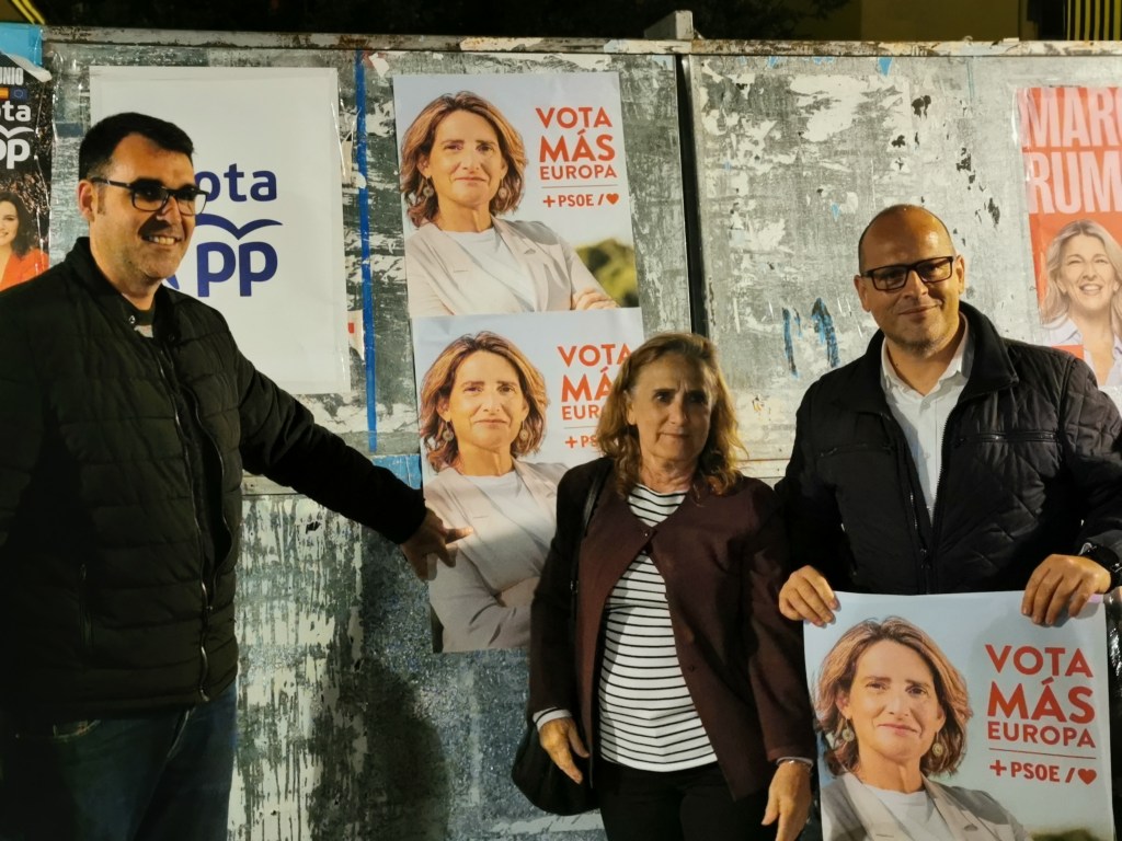 A la par PP y PSOE posicionaron a sus candidatos europeos. Los concejales socialistas en Majadahonda David Rodríguez y Elisa Piñana colocaron en un visible lugar a su candidata, Teresa Rivera, actual Ministra para la Transición Ecológica y el Reto Demográfico de España, primera majariega de adopción en un primer puesto hacia el parlamento europeo, bajo el lema “Vota Mas Europa, + PSOE”.