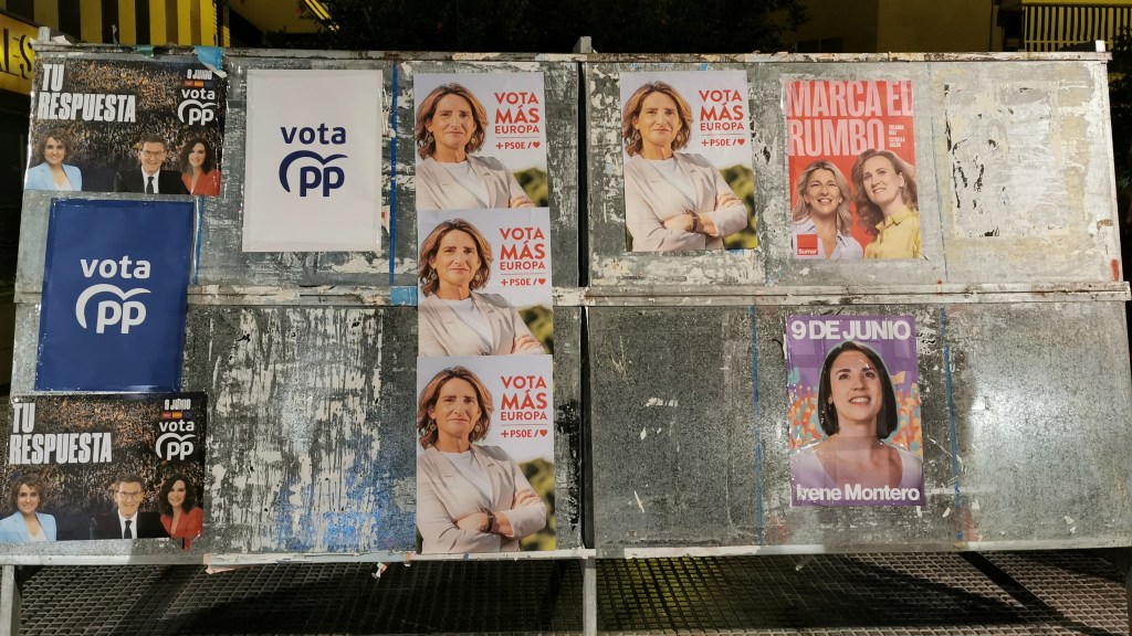 A las 00:00 horas del viernes 24 de mayo con la tradicional pegada de carteles arrancaba la campaña electoral de las Elecciones Europeas 2024. En Majadahonda, PP, PSOE, PODEMOS, y la militancia de Más Madrid-IU en representación de SUMAR, eligieron la zona de la Gran Vía cercana a la Plaza de Colón para colocar ese primer cartel para publicitar a sus candidatos.