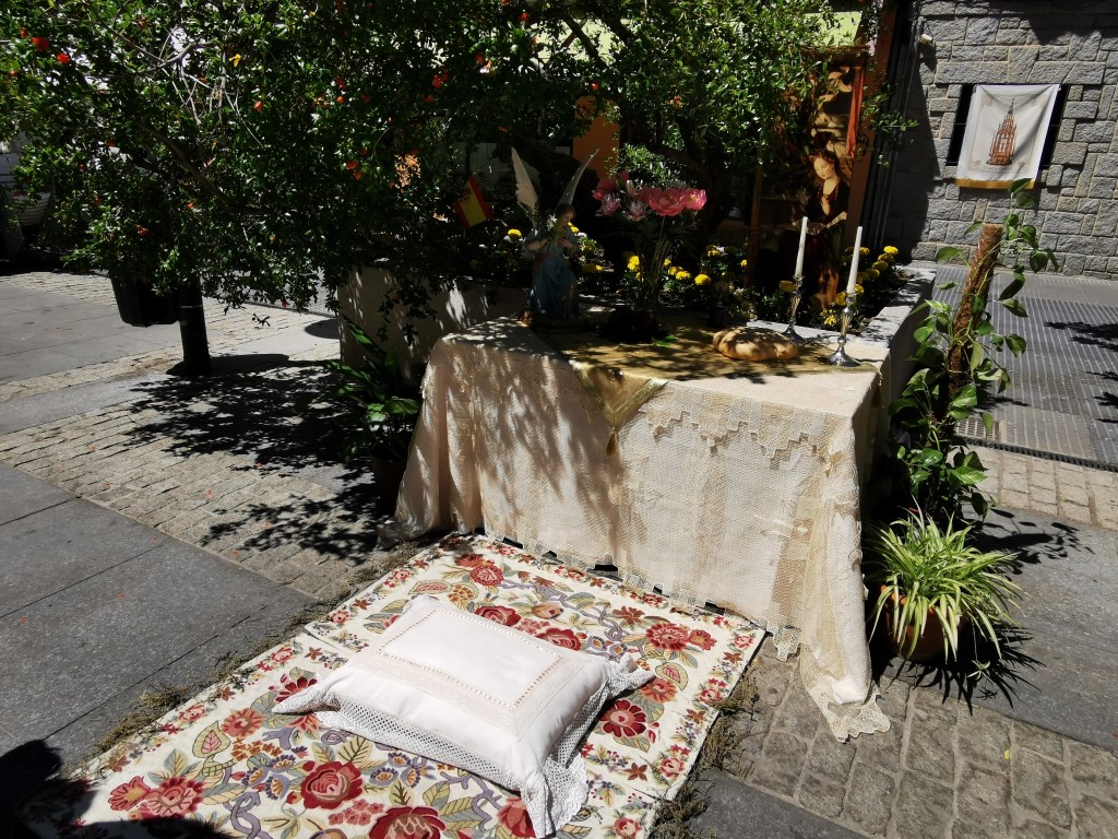 Un total de 6 altares fueron bendecidos y visitados en esta tradicional festividad, todos ellos mostrando diferentes composiciones, pero con un similar recibimiento, el santísimo fue agasajado en cada altar con pétalos de flor. Y rodeado de los niños y niñas que han recibido la comunión este año.