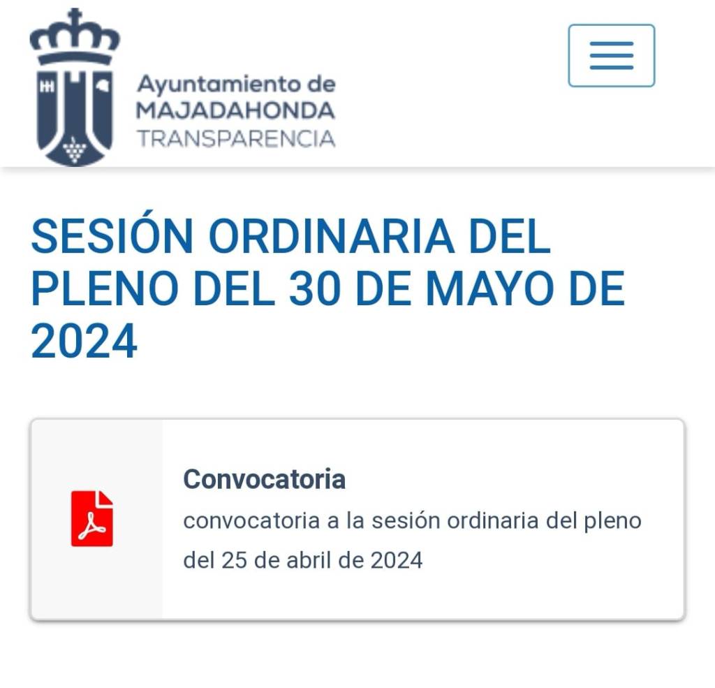 En esta ocasión hemos conocido el Orden del día del Pleno del 20 de mayo del Ayuntamiento de Majadahonda durante su retrasmisión en directo, ya que el Ayuntamiento, equivocadamente y suponemos que de manera involuntaria colgó el orden del día del pleno del mes anterior. Nos llamo la atención, !inexplicablemente a propios y extraños! que excepto un medio de comunicación local, el cual al tener un concejal en el consistorio fuera el único que pudo acceder al mismo y dar cuenta de su contenido. Es inexplicable, ¿verdad?.