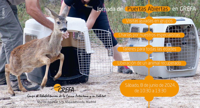 Tenemos ya todo listo para celebrar, un año más, nuestra Jornada de Puertas Abiertas. El sábado 8 de junio (¡apúntatelo en la agenda!) abriremos nuestras instalaciones en Majadahonda (Madrid) a socios, voluntarios, simpatizantes y a la sociedad en general, con el objetivo de mostrar a quienes nos visiten ese día cómo es el Hospital de Fauna Salvaje de GREFA y en qué consiste nuestro trabajo a favor de la biodiversidad.