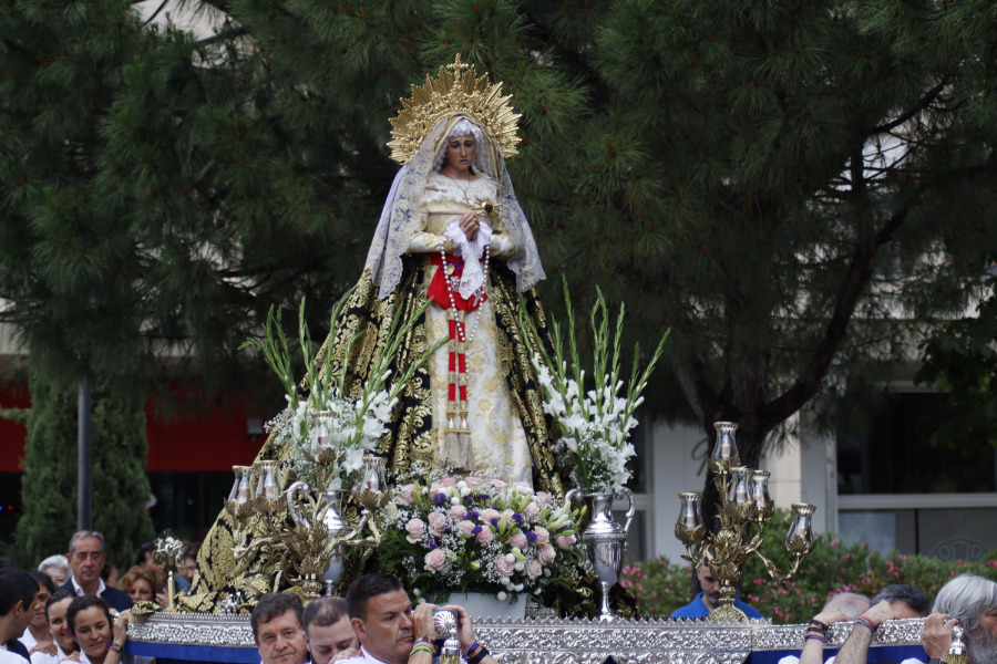 A la hora indicada dio comienzo el acto para que la advocación de Nuestra Señora  de la Soledad, engalanada para la ocasión con un nuevo rosario, un bello manto y una majestuosa toca, donadas por una hermana de esta Hermandad, y el manto confeccionado por Doña Ana Montero camarera de la Virgen, iniciara el camino hacia su destino como manda la tradición.