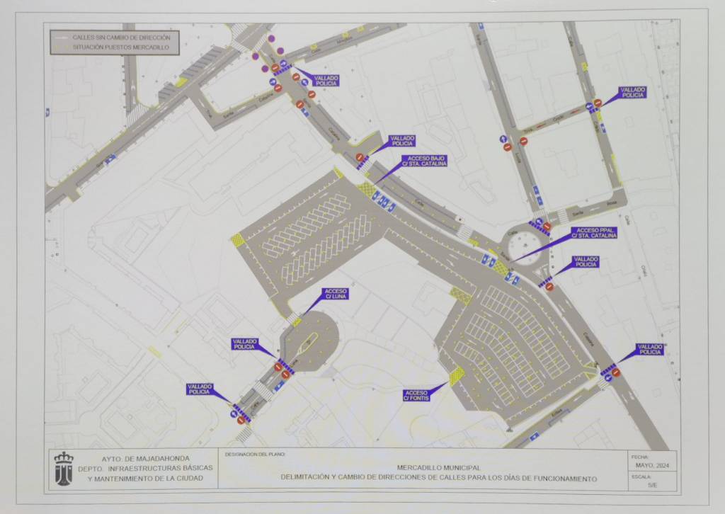 En relación a las obras ya comenzadas añadió “es una obra que estaba ya prevista por los servicios técnicos del Ayuntamiento. Obra de accesibilidad y eliminación de barreras arquitectónicas para dar continuidad al resto de la calle Santa Catalina. En relación a la nueva ubicación de los puestos del Mercadillo este traslado se realiza “Con vistas a mejorar la seguridad y la movilidad dentro del entorno del Mercadillo, y cumplir con la normativa de distancias y espacios de las filas de los puestos, vamos a sacar una fila de puestos de la zona de abajo del Mercadillo a la calle Santa Catalina, espalda con espalda con los puestos que ya hay dentro del recinto. Y otros seis puestos a la glorieta de la Luna”, por motivos de seguridad y garantizar la seguridad de los viandantes, llegando a asegurar “La Ordenanza se va a cumplir, vamos a estar coordinados Policía, Limpieza, Obras y la concejalía de Comercio”. Finalizada su exposición fue el concejal de Movilidad quien mostró el plano de las delimitaciones y cambios de direcciones de las calles para los días de funcionamiento del Mercadillo.