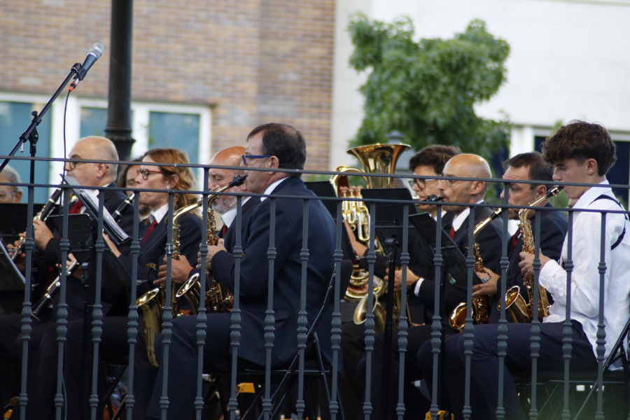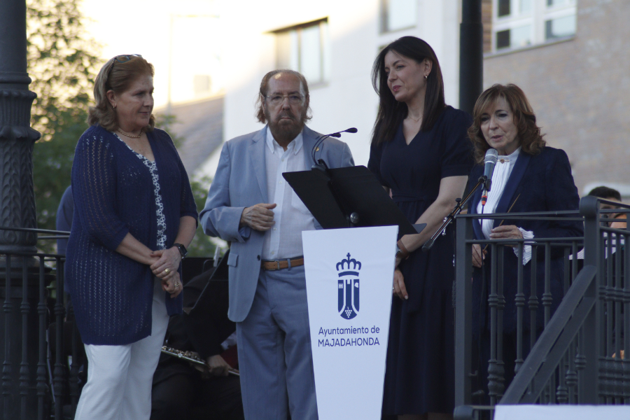Continuando con el ciclo de “Música en el Templete” Majadahonda, este pasado sábado 15 de junio (2024) se interpreto un concierto muy especial en homenaje a Doña Mercedes Padilla Valencia y a Don Miguel del Barco Gallego quienes son “Vecinos de Majadahonda desde hace más de 30 años y dos músicos de reconocida trayectoria profesional nacional e internacional” en palabras de María Eugenia Navarro, Directora de la Escuela de Música Enrique Granados en la apertura del acto. Seguidamente la Alcaldesa Lola Moreno y la concejal de Cultura Nuria Wilde hicieron entrega a los homenajeados de un ramo de flores y una Paloma de porcelana de la afamada escultora de Majadahonda Carmen Perujo, la cual de manera muy discreta se encontraba entre el público asistente.