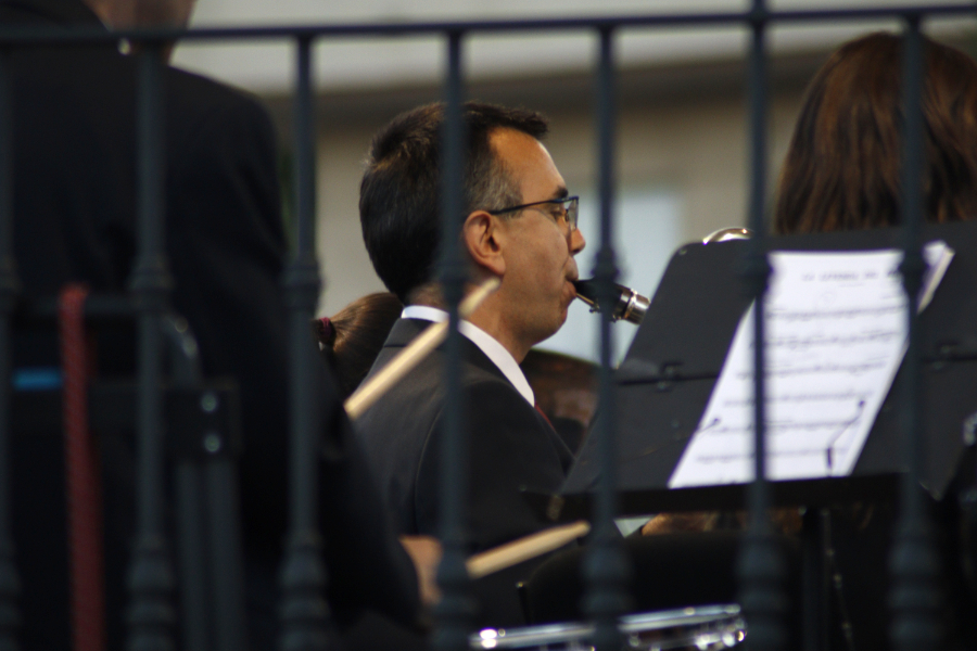 Su marido, Miguel del Barco, compositor y organista, al que también resumimos, no sin mucho esfuerzo, su extenso currículo en palabras publicadas por la Banda Municipal, donde destaca como “ Autor del himno de Extremadura, con numerosos premios y reconocimientos”, y en referencia a una de las obras que más tarde interpretarían aportaban un dato curioso “ Esta Obertura para la ACB (Asociación de Clubes de Baloncesto) de 2008, empieza así: A (la) C (do) B (si)”. En su discurso comenzó reconociendo que “Considero un privilegio impagable residir en este municipio”, para seguidamente añadir “Siempre he hablado, en numerosas conferencias, de la misión trascendental de las bandas de música para la formación del pueblo, gracias a las bandas de música el pueblo ha podido escuchar música folclórica y también música clásica. Gracias a las bandas muchas veces compuestas de aficionados, y de personas que trabajando en el campo venían después a tocar los instrumentos, con una alegría y una satisfacción extraordinaria, y gracias a ellos el pueblo ha podido formarse en la más extensa de las artes que es la música”.
