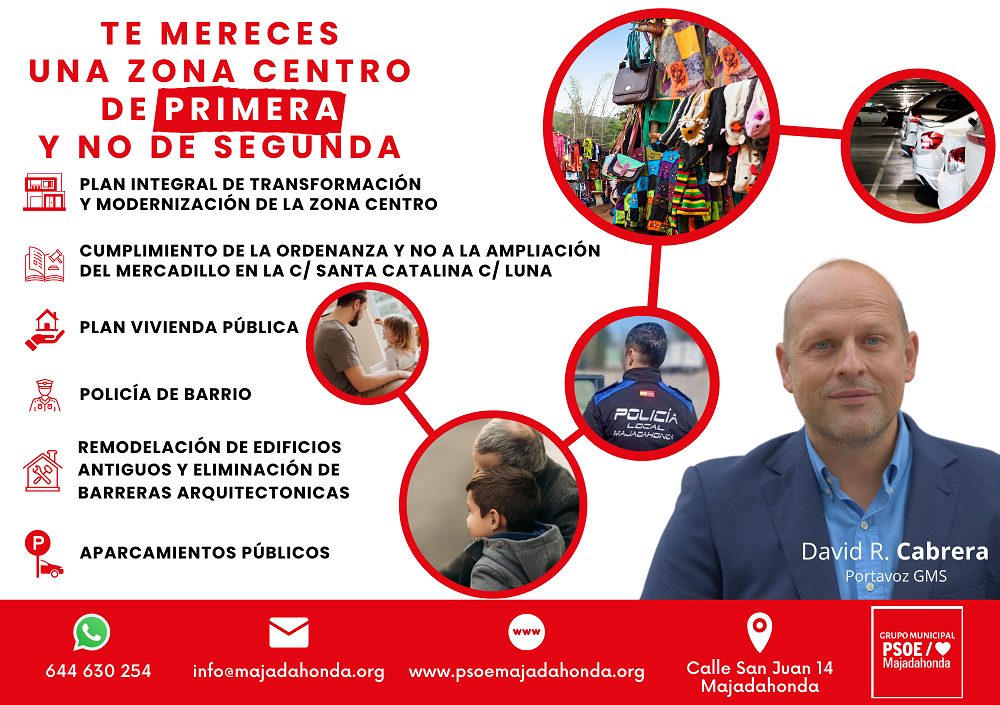 “La Zona Centro es la gran olvidada de Majadahonda y no se está invirtiendo un solo euro en mejorar la zona donde se concentra la mayor población de Majadahonda”, ha señalado el portavoz socialista David Rodriguez, y “no queremos vecinos de primera o de segunda en función de la calle donde vivan, queremos una ciudad cohesionada con un centro renovado y seguro y eso implica un Plan Integral de Remodelación de la zona centro«, añadió el portavoz socialista.