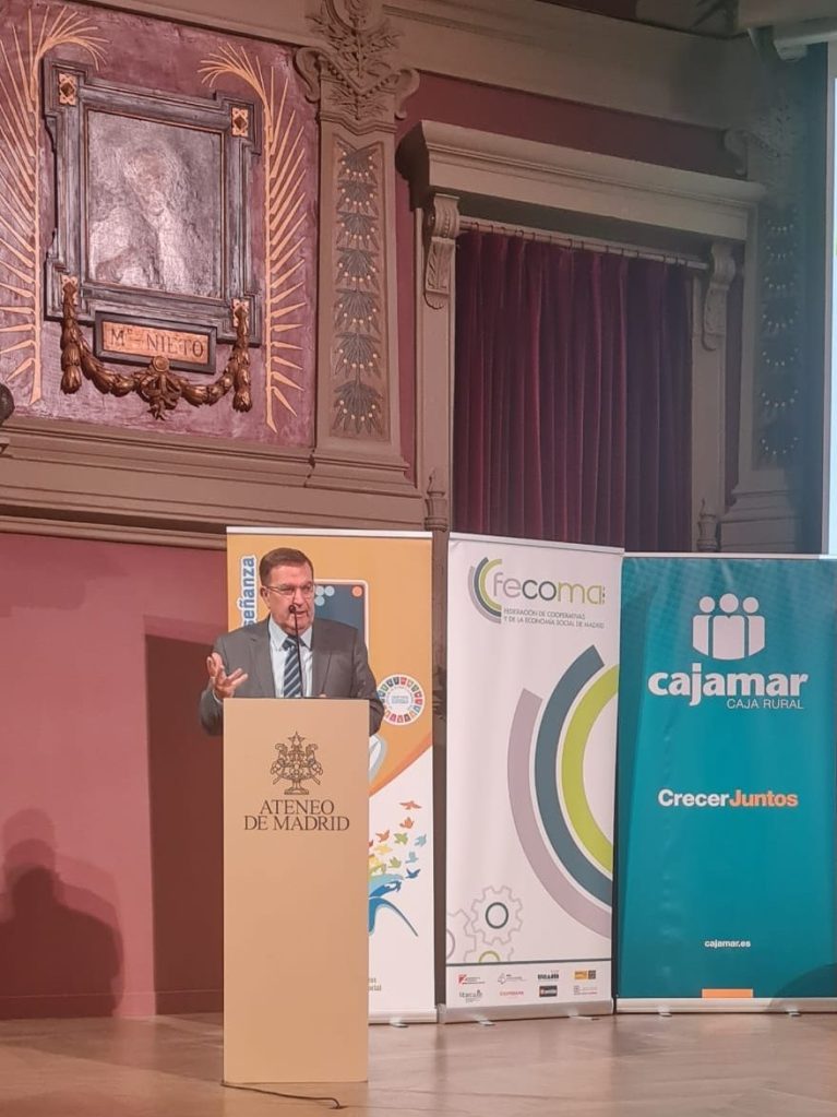 La Federación de Cooperativas y Economía Social (FECOMA) celebró los premios ES-MAD, acto que tuvo lugar en el Ateneo de Madrid (Calle del Prado, 21), y en el que reconocen los mejores proyectos empresariales de las distintas familias de la economía social: sociedades laborales y cooperativas de trabajo asociado, transporte, consumo, enseñanza y vivienda.