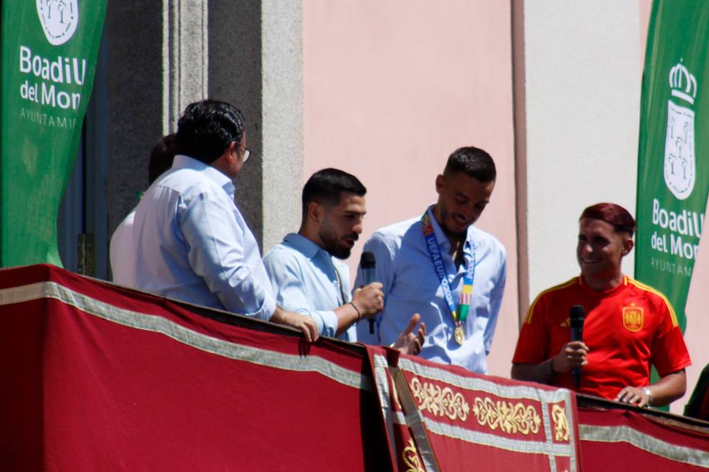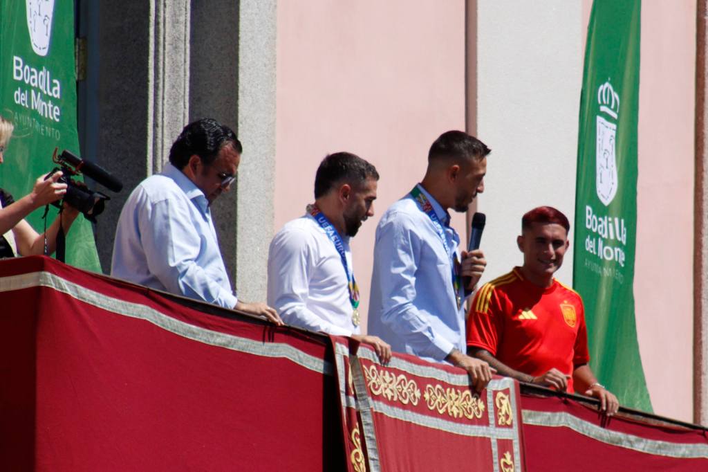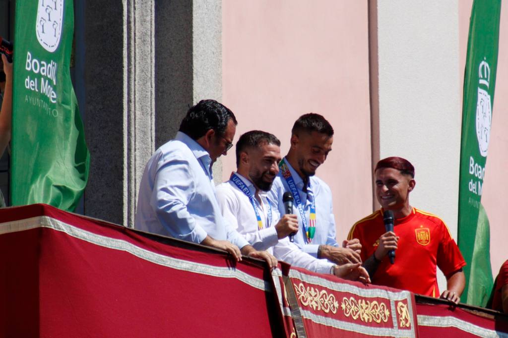 Comenzando por Joselu, quien aseguró “Creo que habéis sido imprescindibles en esta Eurocopa como muchos municipios más, pero nosotros dos representando a Boadilla estamos muy orgullosos de poder estar hoy aquí con vosotros. Felices por lo conseguido. Esperemos que a partir de ahora sea un antes y un después de cara a esta selección, a este grupo que hemos hecho, algo increíble, y que venga lleno de éxitos en el futuro”.