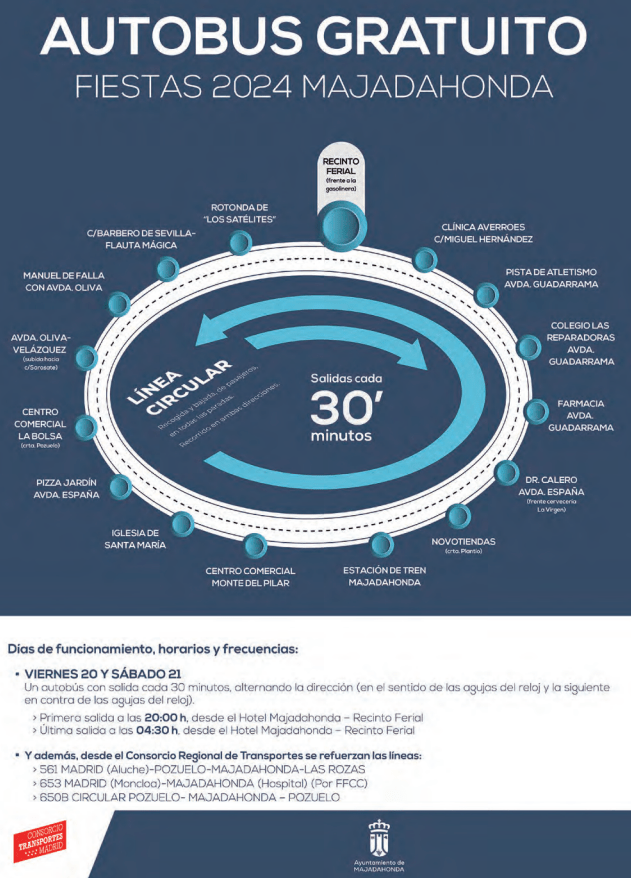 Recorrido 1: C/ Francisco Umbral, – Avda. España (Auditorio A. Krauss), – Avda. España (c/ Dr. Calero), – c/ Dr. Calero (Avda. Reyes Católicos), – c/ Dr. Calero (c/ Dr. Bastos), – c/ Dr. Marañón (c/ San Vicente), – c/ Miguel Hernández (Cementerio), Ctra. De Pozuelo, c/ Francisco Umbral.