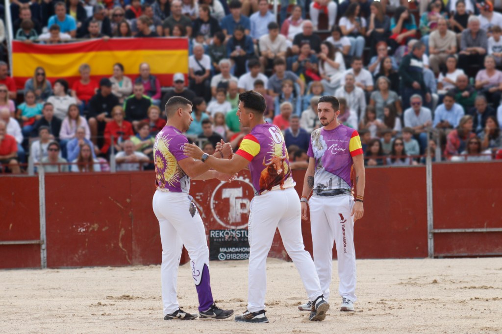 Aforo completo para una tarde en la que recortadores y astados encandilaron a los asistentes ofreciendo una inolvidable tarde que perdurará en el recuerdo. Emotiva también por la sucesión de inesperados gestos que acontecieron desde el comienzo, en palabras del presentador del concurso “Tanto en el toro como en la vida hay que ser agradecidos, este pueblo tan taurino como es Majadahonda quiere tener un detalle con dos personas que siempre han servido a la perfección a su pueblo, cada uno en su papel, siempre han sido muy serios, muy profesionales y muy comprometidos con las fiestas de Majadahonda. Olimpiades Rivera, 40 años de servicio como director de festejos de Majadahonda, es su último año. Y Arturo Yáñez Suboficial del Cuerpo de Policía Local”, los cuales recibieron los aplausos del público. Seguidamente fue entregado el “III Memorial Daniel González Arribas” en reconocimiento al detalle artístico de los encierros y las capeas de Majadahonda fue entregado a Ángel Escribano, el cual lo recibió de manos de Sergio García, reconocidos recortadores majariegos ambos. Quisiera finalizar, continuo diciendo el presentador, con el agradecimiento y solicito, a su vez, aplausos para el empresario taurino Ignacio Ríos y el Ayuntamiento de Majadahonda “por seguir manteniendo viva la llama del toro”.