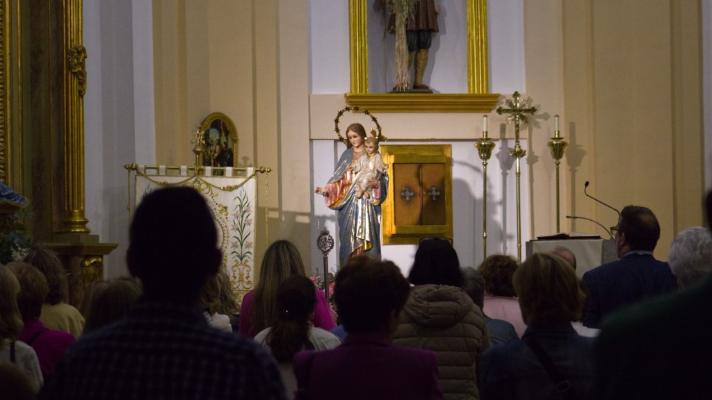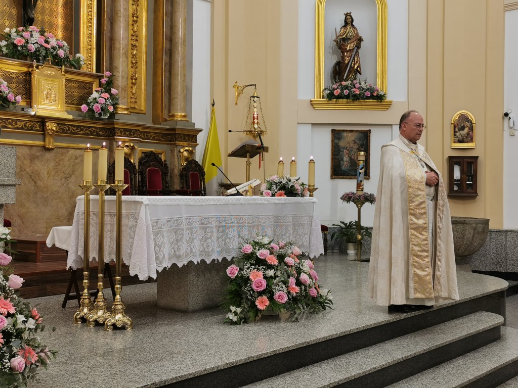 Como así rogaba nuestro Párroco, Juan Francisco Pérez Ruano, “Que la Virgen del Rosario nos proteja, nos guarde, y nos permita hacer la batalla de todos los días para conseguir la Paz y el bienestar para todos los hombres”. Y recordó a los asistentes que este 7 de octubre las campanas sonarían por las víctimas de las guerras, como así fue. Como también sonaron a la salida y llegada de la Procesión, artífice de ello fue una mujer en tan señalado día, la sacristana Amparo Córdoba, que con su tañer de campanas advierte de que un relevante acto eclesiástico va a tener lugar.