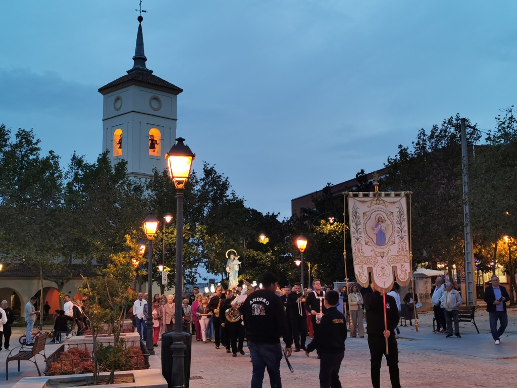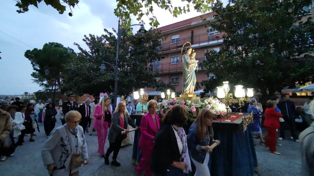 A las 19:30 horas daba comienzo la Procesión, las hermanas de esta asociación portaban a tan venerada ante la atenta mirada de los capataces de la Hermandad de Jesús el Pobre de Madrid en su colaboración inestimable en los actos religiosos de Majadahonda que requieren su presencia. En el exterior junto a los fieles les aguardaba el toque musical que requiere este tipo de actos, en esta ocasión fue la banda “La Asamblea de Majaras”, encargados de alegrar con sus interpretaciones este festivo día. Entre las autoridades destacó la presencia de: la Alcaldesa de Majadahonda, Lola Moreno (PP), junto a los concejales, Antonio Rodríguez (PP) y Ramón Losada (PP), y el concejal de VOX Carlos Castro, y el Jefe de la Policía Local Ismael Illán.