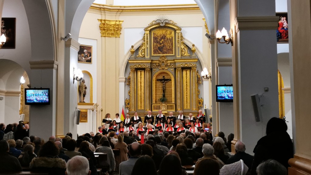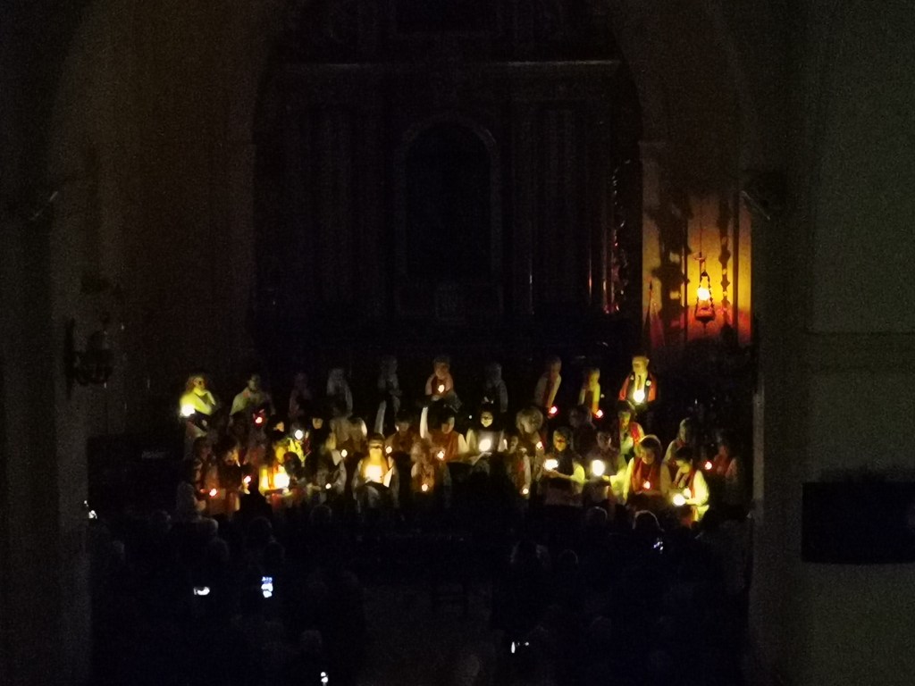 Recital en el altar mayor, al cual se trasladaron los coralistas tras la misa en procesión por el pasillo central del templo, iluminando la oscuridad del momento portando velas e interpretando la conocida canción popular “Santa Lucía” (Arr. G. Molina).