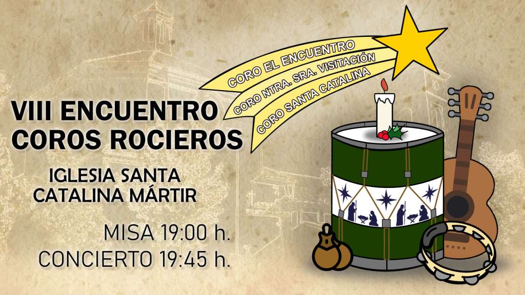 Este sábado 21 de diciembre (2024) tres coros rocieros cantarán a la Navidad en la Parroquia de Santa Catalina Mártir de Majadahonda. VIII Encuentro de Coros Rocieros que comenzará a las 19:00 horas con la celebración de una misa, para seguidamente a las 19:45 horas deleitar a los asistentes con un concierto de Villancicos.