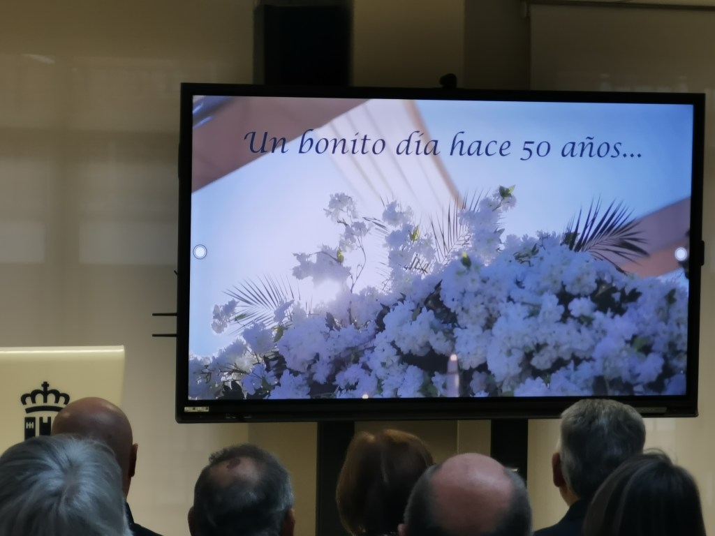 Seguidamente anunció la proyección de un video, en el cual cada pareja con imágenes y un breve texto mostraban sus recuerdos y vivencias, con el que en palabras de la concejal “hemos querido plasmar con mucha ilusión, vuestra historia. Hoy, sin duda, los protagonistas sois vosotros”.