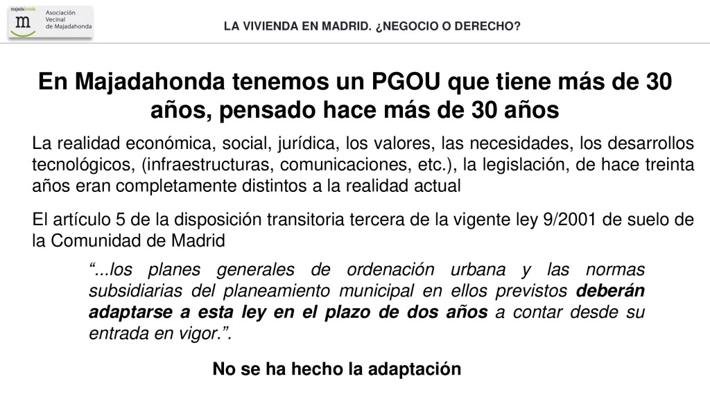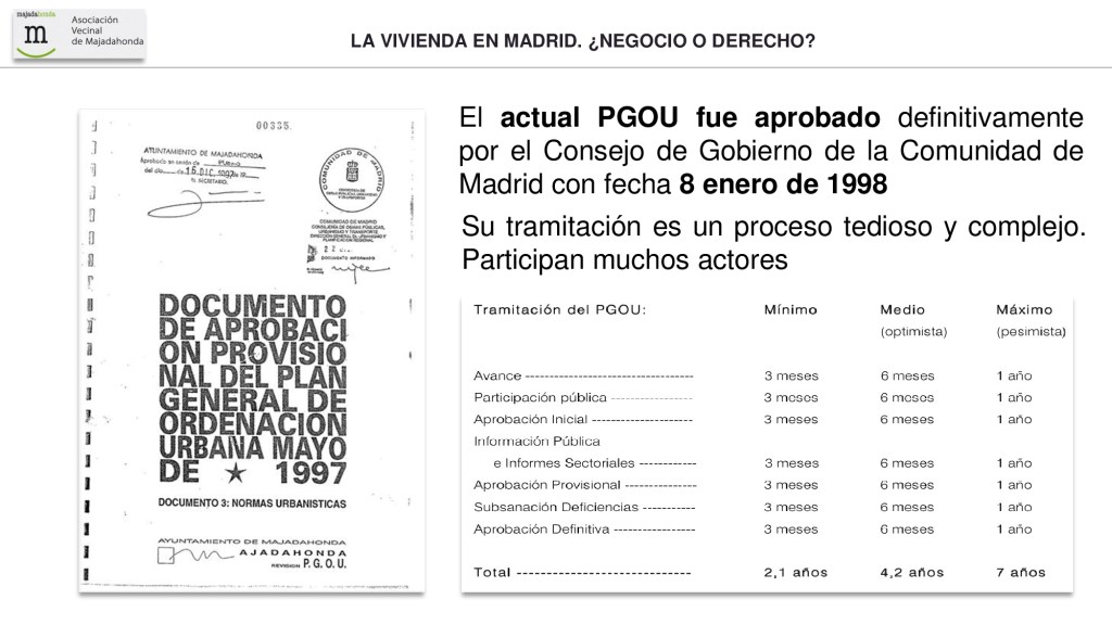 Y si no está definido, hay que hacer una modificación.El plan actual se aprobó en enero de 1998. La tramitación de un plan es una tramitación súper tediosa, se puede tardar dos años o más. El de Majadahonda tiene más de 30 años.