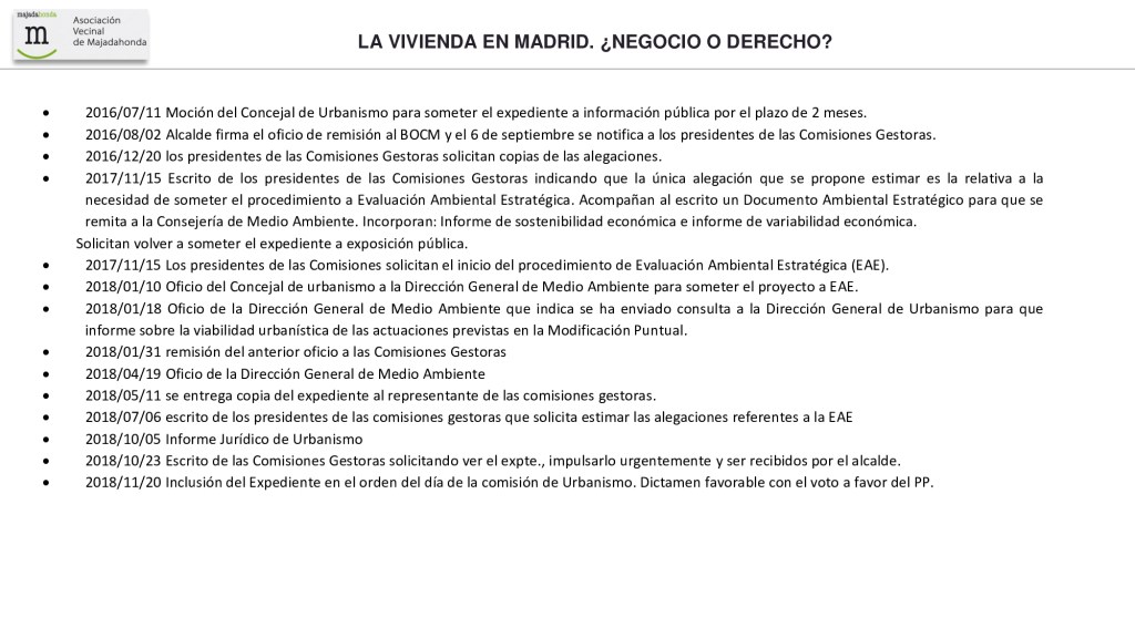 La Asociación Vecinal de Majadahonda durante el último acto organizado en la Casa de la Cultura Carmen Conde, bajo el titular “La vivienda en Madrid. ¿Negocio o derecho? “contó con la participación de Anselmo Soto, Dr. Ingeniero de Caminos, y ex concejal de Majadahonda donde fue miembro del Consejo de Administración de PAMMASA, cargos que le han conferido ser  un gran conocedor del ámbito urbanístico en Majadahonda, todo ello unido a la experiencia adquirida de ser profesor universitario, desencadenó en el éxito de su ponencia.