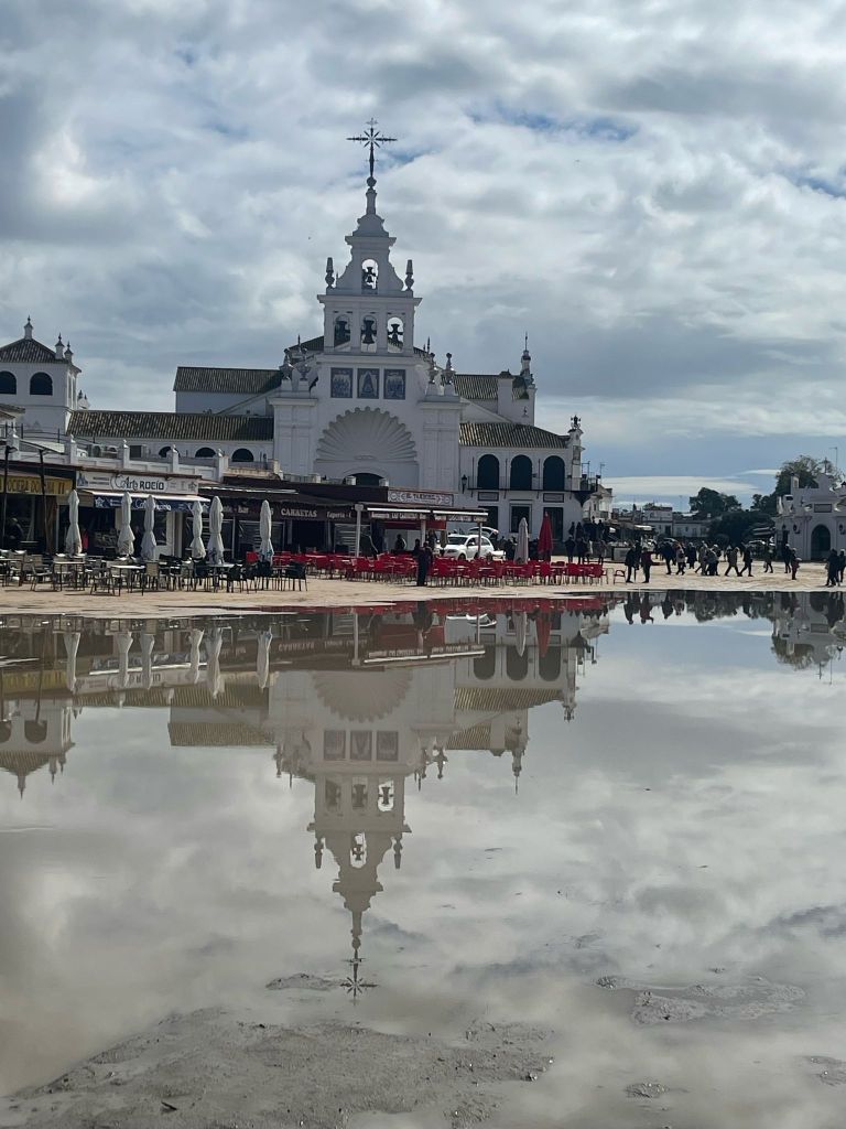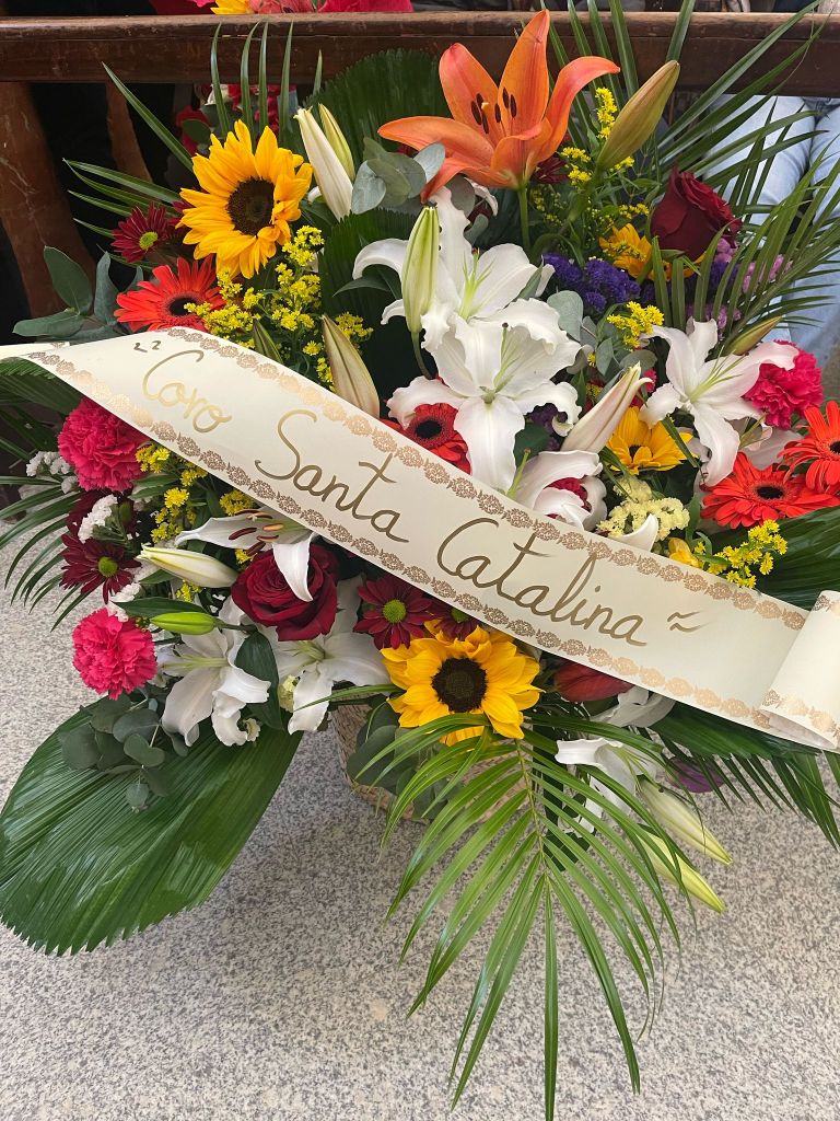 En el santuario de Nuestra Señora del Rocío, conocido popularmente como la ermita del Rocío, tuvo lugar una misa celebrada por nuestro párroco, en la que cantó el Coro Rociero, como ofrenda dejaron a los pies de la Reina de las Marismas un centro de flores con una banda en la que se lee “Coro Santa Catalina” en recuerdo de su paso por tan insigne lugar.