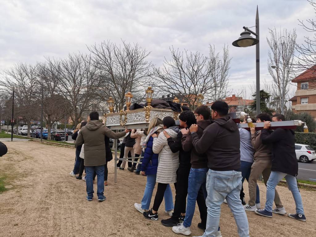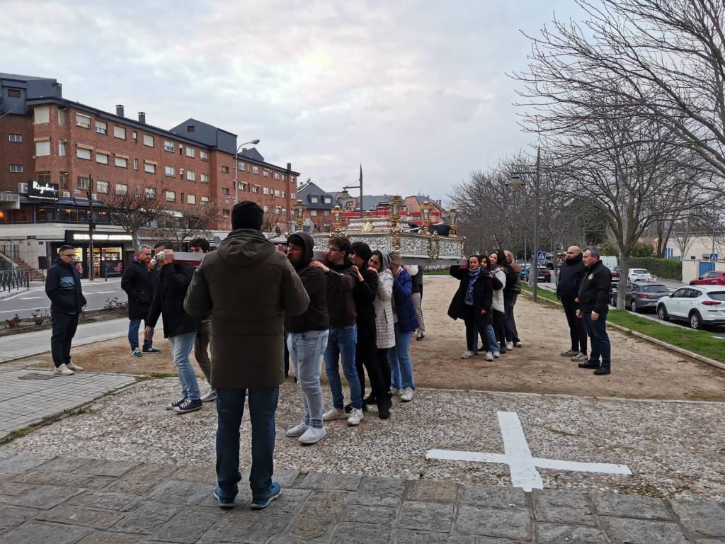A menos de un mes de la Semana Santa de 2025, la cual este año comenzará el domingo 13 de abril al domingo 20 de abril de 2025, los anderos y anderas de Majadahonda han comenzado sus ensayos frente a la ermita del Stmo. Cristo de los Remedios.