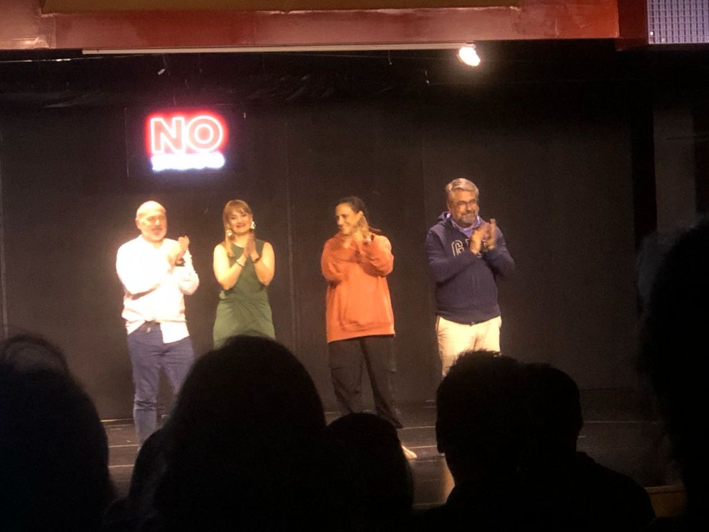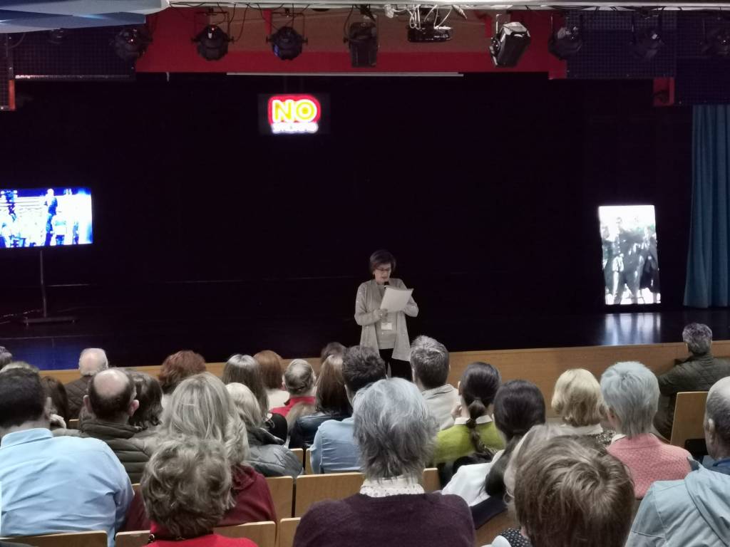 Mercedes Alegre, directora artística de este grupo de teatro aficionado, dirigió unas palabras al numeroso público asistentes, en las que aseguró que sus dos principales objetivos son “primero hacer teatro porque es nuestro hobby, es lo que nos gusta, y el segundo es hacer el mayor número de representaciones benéficas posible”. Para seguidamente añadir “me gustaría daros dos pinceladas sobre la obra que vais a ver, porque tiene que ver mucho con el motivo por el que estamos hoy todos aquí. Lo primero que hay que decir es que estamos ante un texto contemporáneo, no es una obra al estilo aristotélico que tiene una presentación, un nudo un desenlace final donde todo termina bien o mal, aquí es lo que se llama “teatro de lo aplazado”, cuando uno llega a su casa está todavía dándole vueltas”. Finalizó con un breve resumen del autor de “Humo”, Josep María Miró, y su obra para dar paso a la presidenta de la asociación, Mayte López, de la cual dijo “ella representa a todos los voluntarios que día tras día dejan su esfuerzo para colaborar con estas obras sociales”.