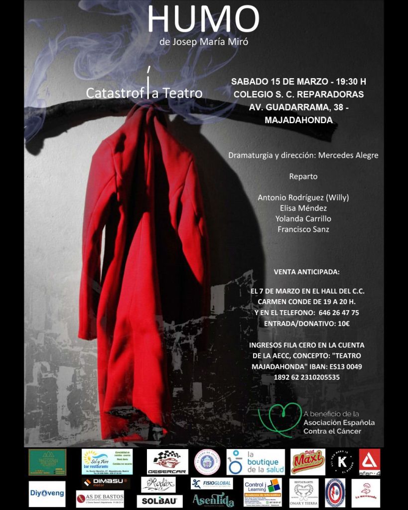 Este pasado sábado 15 de marzo tuvo lugar la representación de «Catastrofía» Teatro a beneficio de la Asociación contra el Cáncer de Majadahonda, en el teatro del colegio del Sagrado Corazón Reparadoras.