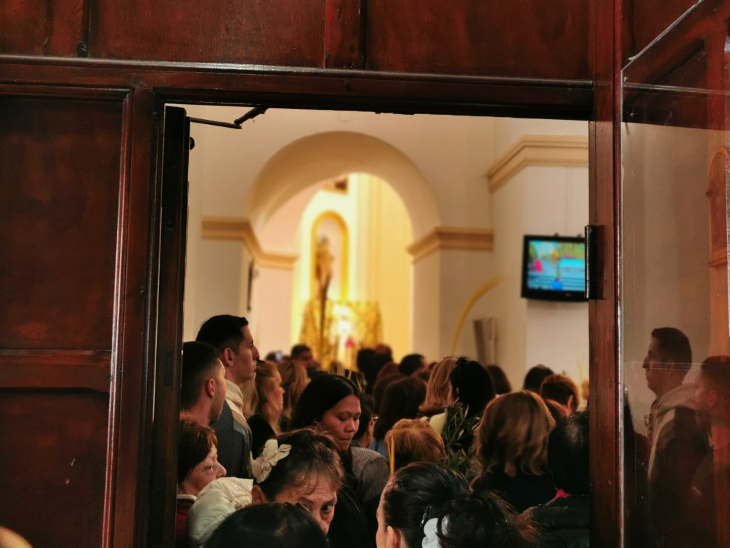 Llegados a la parroquia dio comienzo la Misa Mayor, el templo albergaba en su interior tan elevado número de creyentes que el acceso era dificultoso, algo similar a lo acontecido durante la primera misa de la mañana.