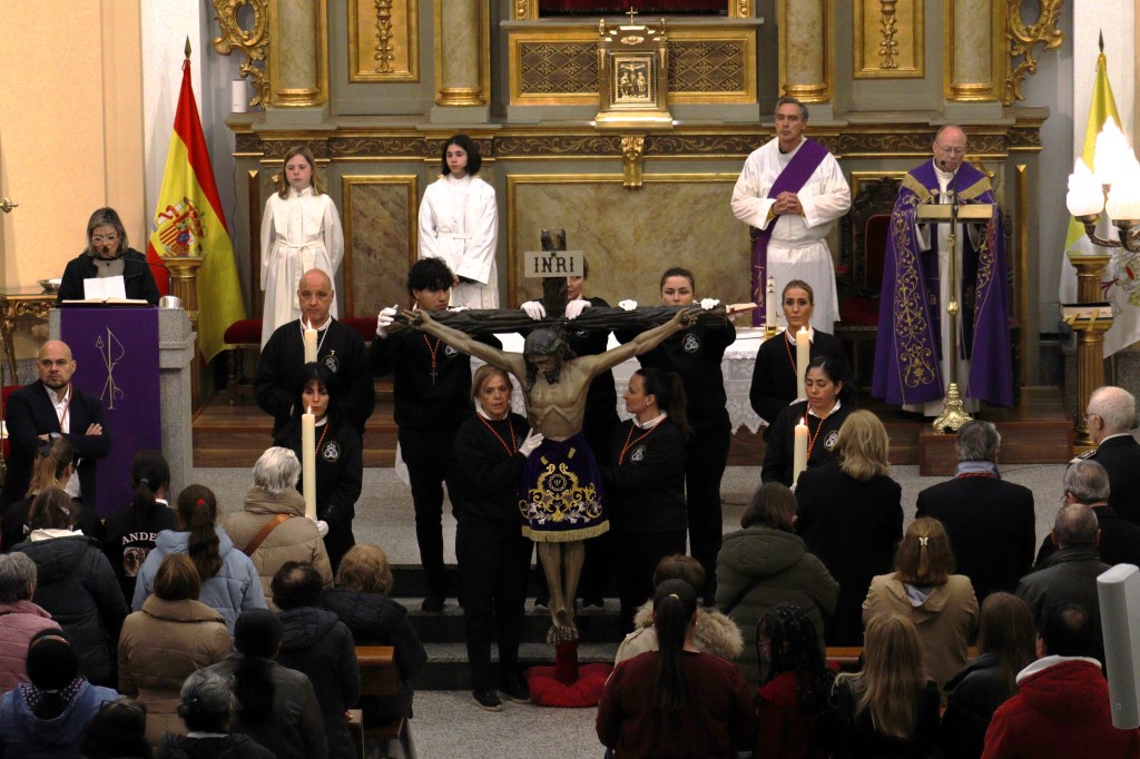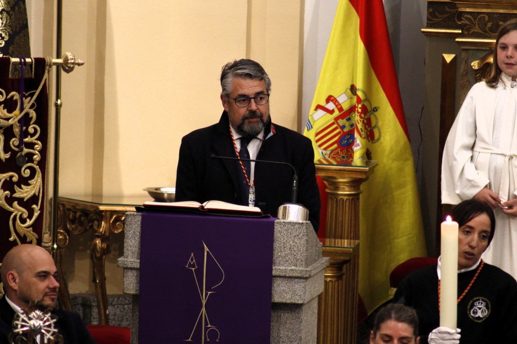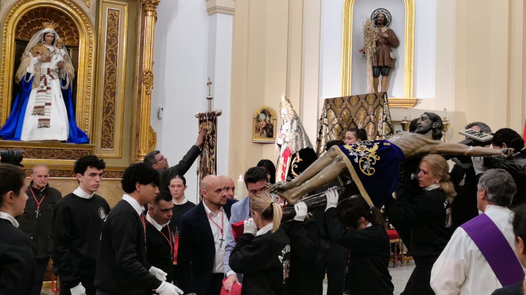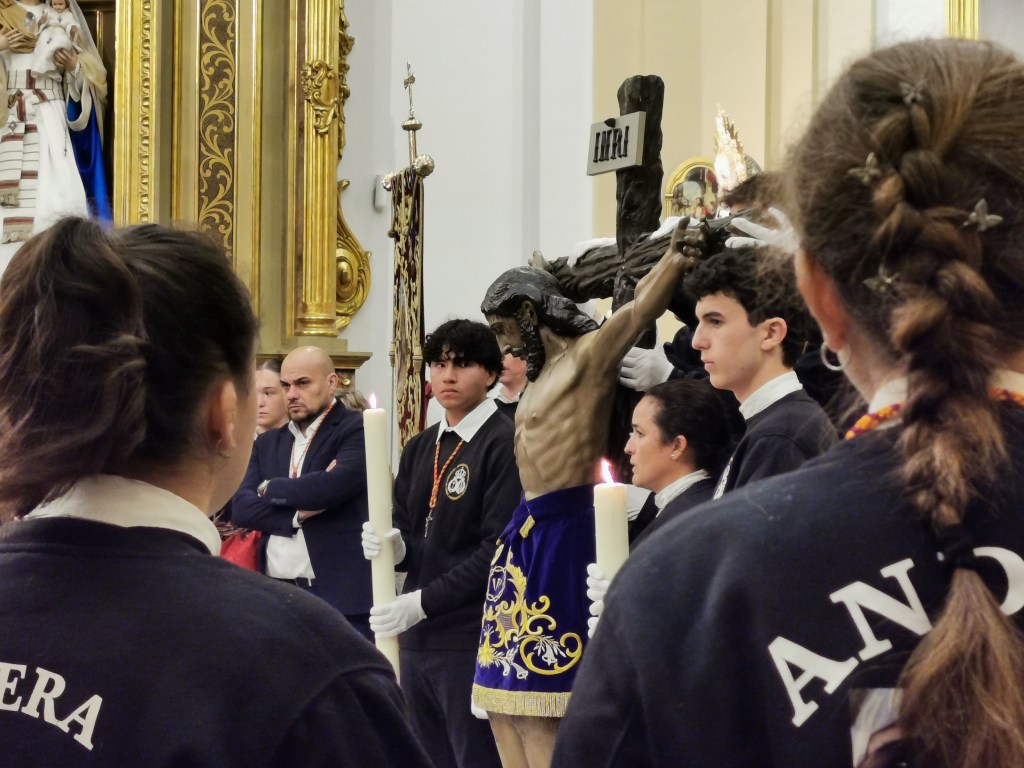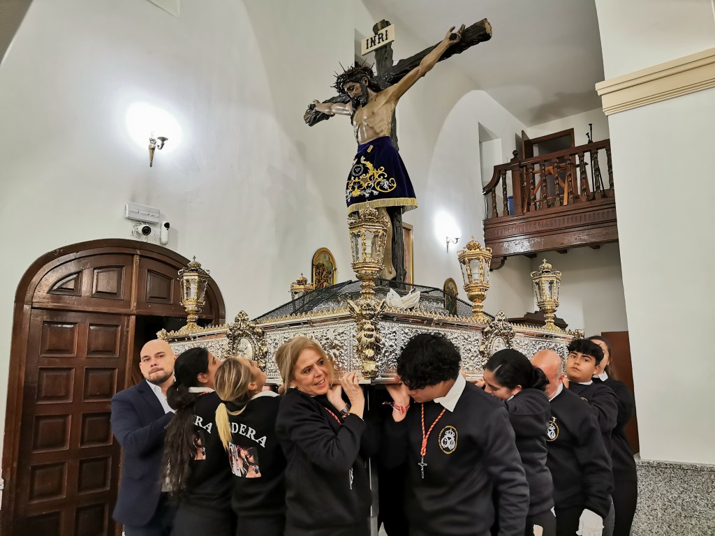 Una vez finalizado el Vía Crucis, el Cristo fue trasladado a su trono, donde se le colocó su corona de espinas, la cual fue portada durante la procesión por un miembro de la Hermandad.