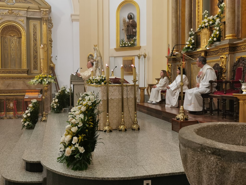 Ante una iglesia repleta de feligreses, nuestro párroco en su homilía comenzó anunciando “¡Cristo ha resucitado!, verdaderamente ha resucitado, ¡Aleluya, Aleluya! Feliz Pascua de Resurrección”. Para seguidamente recordar “Anoche sonaban las campanas indicando que la muerte ha sido vencida, que la muerte ya no tiene ningún poder sobre nosotros, que la muerte que hemos recibido por la herencia del pecado ha sido vencida en la resurrección de Cristo. Por eso hoy estamos alegres, por eso se ha vuelto a llenar todo de vida, las flores que nos hablan de la vida, el incienso nos habla de la oración, del triunfo de la oración, todo nos habla de que Cristo vive”. A continuación agradeció la presencia del Jefe de la Policía Local, Ismael Illán “Quiero agradecer también a Ismael que se ha quedado aquí con nosotros en representación de todas las autoridades, su presencia, igual que agradecer también a la corporación municipal que haya estado acompañándonos en estos días de Semana Santa”. Sin olvidar hacer referencia al significado de la Quema del Judas “No sé si todos os habéis dado cuenta de la segunda lectura en la que el apóstol San Pablo a los corintios, que nos hablaba precisamente de esto, de que hemos muerto al hombre viejo y resurge el hombre nuevo”, para finalizar recordando “Cristo ha vencido. Dios ha mostrado su amor hasta el extremo y ha resucitado a aquel que había entregado la vida por amor, eso es lo que estamos celebrando. Y esto nos tiene que llevar a que nuestra vida, la de todos los días, también sea un continuo resucitar. A que nuestra vida pudiera ser un continuo entregarnos a los demás, para poder experimentar continuamente el amor y la misericordia que Dios tiene por nosotros. ¡Feliz Pascua!”