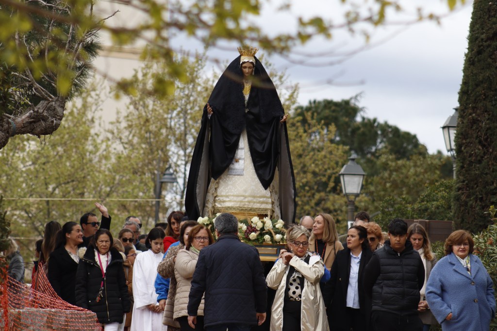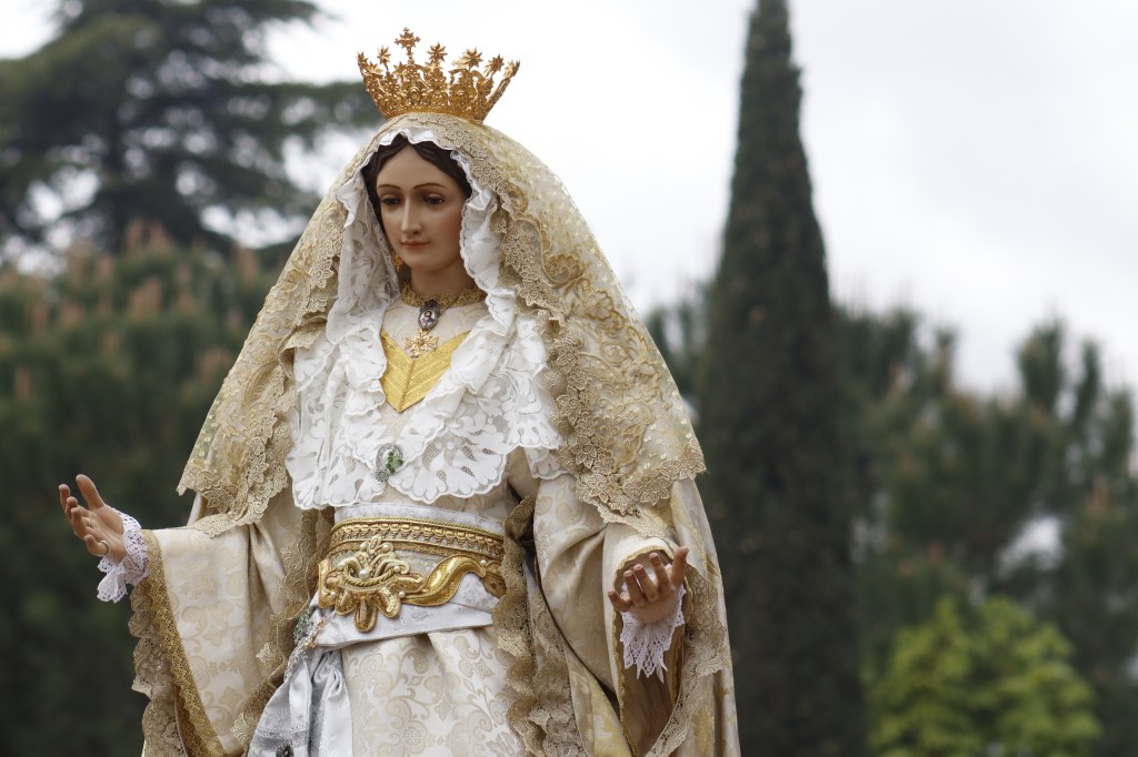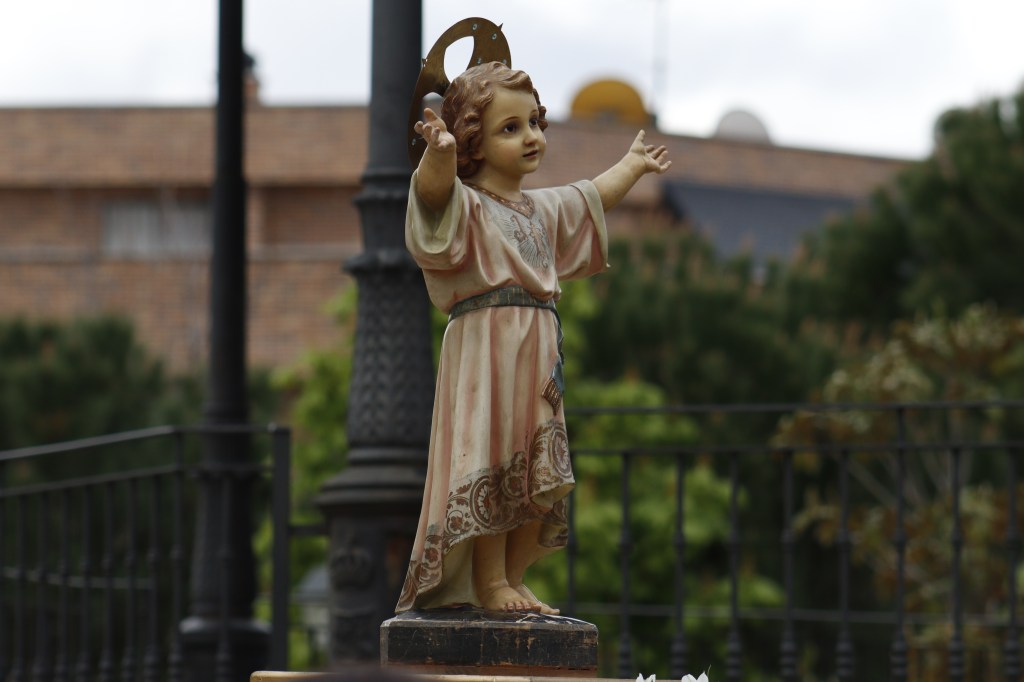 El primero fue el protagonizado por la Procesión del Encuentro, momento en el que la Virgen de la Alegría se encuentra con su hijo “El Divino Niño”(Resucitado), escenificando un emotivo momento en el que la Virgen enlutada antes de llegar hasta Él realiza dos reverencias como gesto de respeto y veneración. Una vez despojada del luto, acto que realizó la Alcaldesa de Majadahonda, Lola Moreno, y finalizó nuestro párroco, Juan Francisco Pérez Ruano, dejando al descubierto la felicidad de una Madre al reencontrarse con su hijo, al cual creía había perdido, y ambos manifiestan su alegría con una sonrisa y los brazos abiertos, la Virgen con esa misma mirada con la que cualquier madre, a pesar del paso de los años ve a su hijo, en su más tierna infancia, en su caso ella ve al Divino Niño.