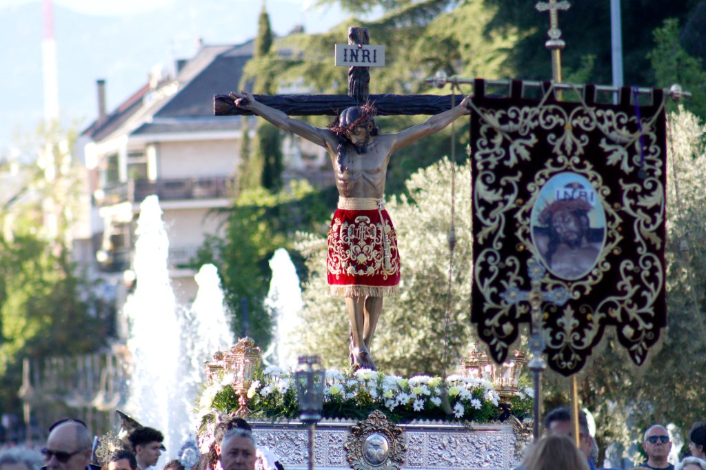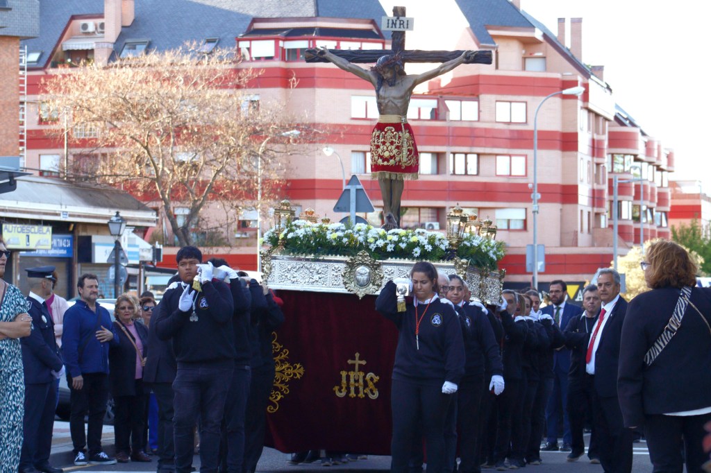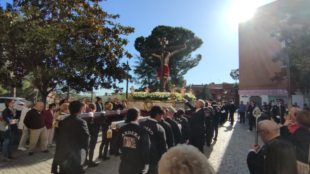 Otra de estas emotivas levantás tuvo lugar en la calle central del municipio «la vamos a dedicar a los que estamos en la Gran Vía, por esta vía de Majadahonda han pasado todas las generaciones que se han postrado a los pies del Señor, nuestros mayores, los abuelos, abuelas, nuestros padres, nuestras madres, que nos acercaron al Señor, por vosotros, por los niños que se acercan a Él, para que sigamos disfrutando de la presencia de nuestro Señor aquí, junto a Él, y sigamos pidiéndole su auxilio, su ayuda, porque sin duda siempre será necesaria una Pasión para poder Resucitar».