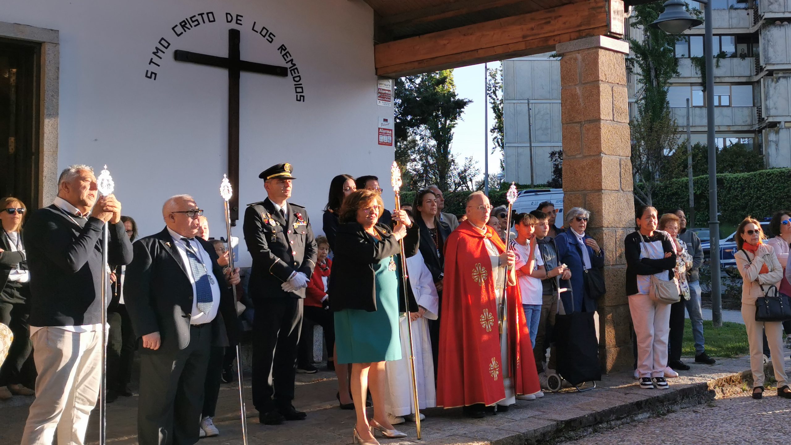 Y finalmente, frente a la Ermita, tuvieron lugar dos de las más emotivas dedicatorias, a la Hermandad del Stmo. Cristo de los Remedios y Virgen de la Soledad cuya levantá fue realizada por su presidenta Maricarmen Martín en nombre de todos los miembros de esta Hermandad, y la de nuestro párroco que recibió la siguiente dedicatoria «Nuestro director espiritual, nuestro párroco, nuestro amigo, que nuestro Cristo de los Remedios, lo cuide, le ayude para pastorear a este rebaño que a veces necesita mucha miel para tanta hiel, que esta Hermandad del Cristo de los Remedios esté a la altura de su titular».