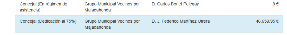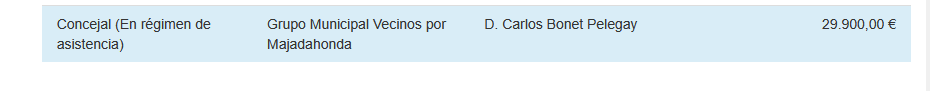 Este buen “samaritano” de Vecinos por Majadahonda aseguró «Ese medio de comunicación que ha cerrado (En Papel), con Vecinos por Majadahonda era bastante hostil, casi tanto como con ustedes, pero nosotros hemos cambiado el punto de vista, hemos intentado ayudarles publicitariamente para que subsistan», Imaginamos que esa ayuda procede de los 7.440 € de la asignación que le corresponde a su partido como Grupo Político con representación en el Ayuntamiento, ya que los 46.659,95 € de su sueldo de concejal, o los 29.900 € de su portavoz Carlos Bonet, dudamos sean destinados a colaborar con los medios, !Estos son “Pa la saca”! De nuevo los impuestos de los auténticos vecinos de Majadahonda sufragan los gastos de políticos de dudosa capacidad.