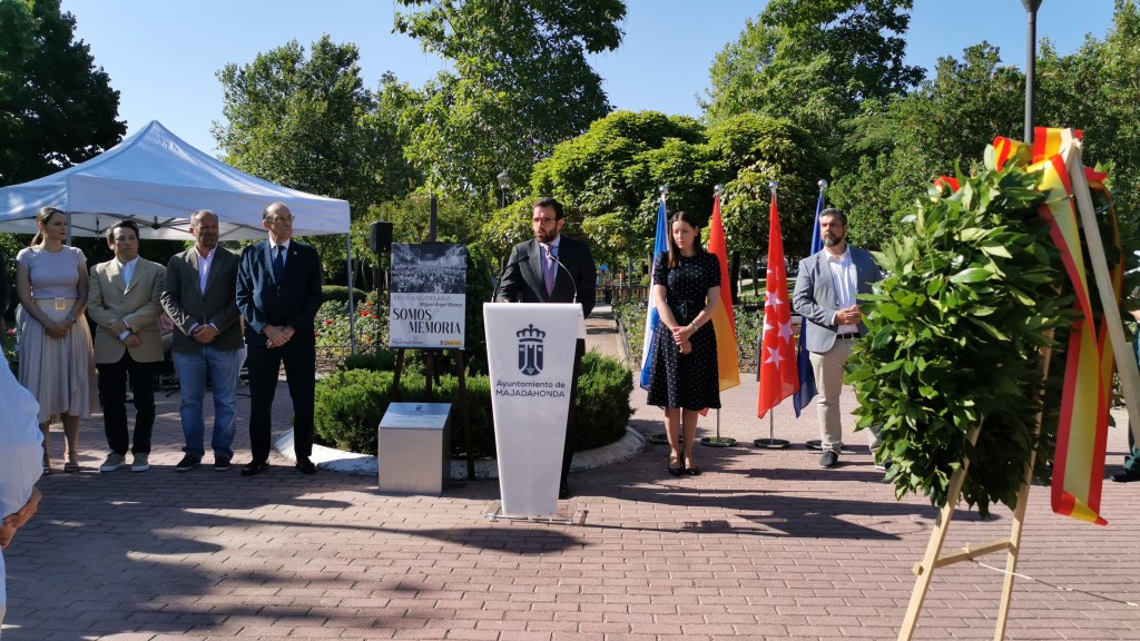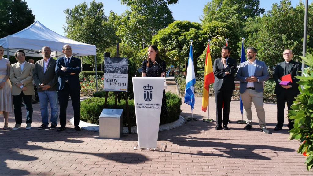 Durante el día de ayer, 11 de julio (2025), en la rosaleda de las «víctimas del terrorismo» de Majadahonda se rindió homenaje a Miguel Ángel Blanco, asesinado por ETA, y a todas las víctimas del terrorismo reclamando para ellos «Memoria, Dignidad y Justicia», como reza la placa ubicada en el lugar.