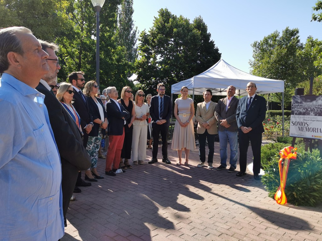 Tras depositar una corona de laurel en el monolito en memoria de las víctimas del terrorismo llegó el responso en memoria y respeto de Miguel Ángel Blanco y todas las víctimas del terrorismo.