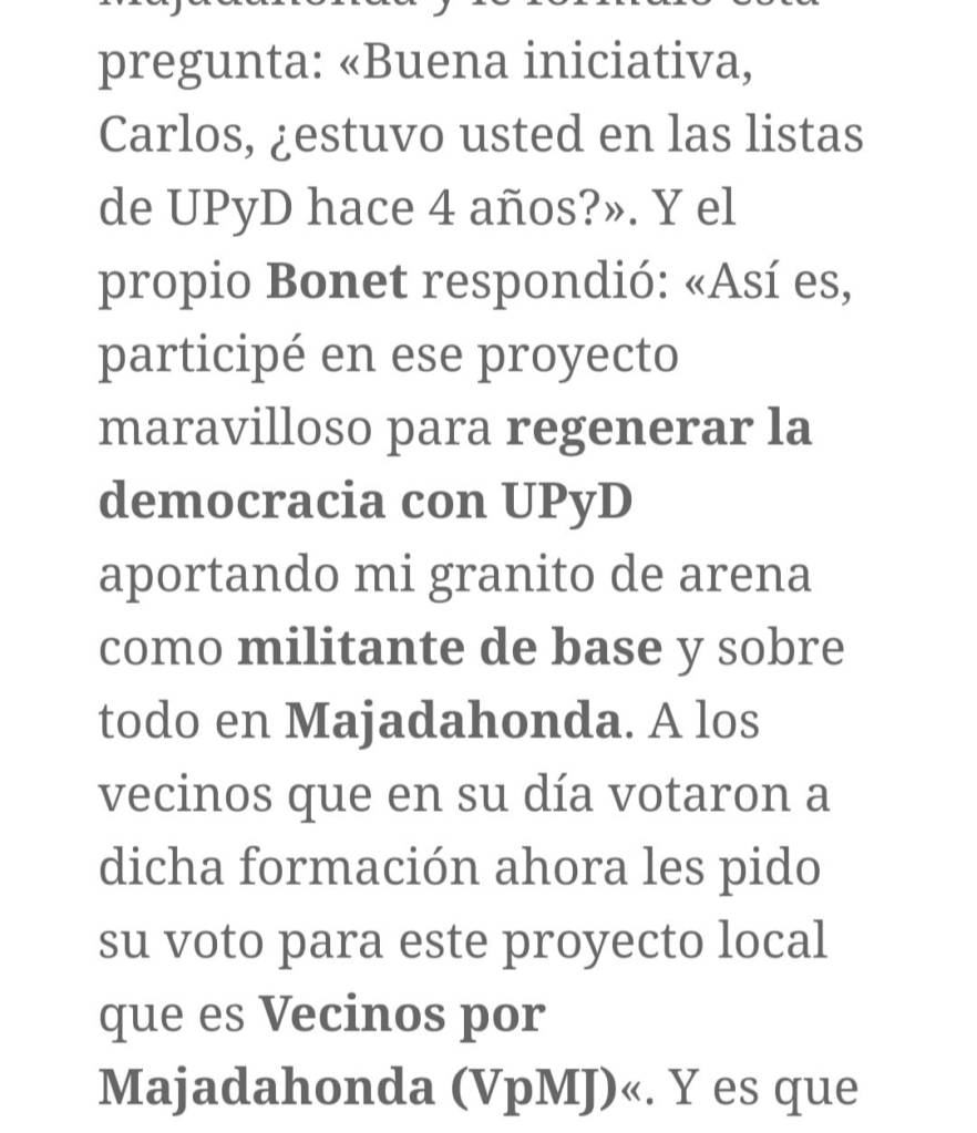 En su «Pasquín», han llegado a asegurar «al Partido Socialista le molesta que no seamos políticos y lo siento: no nos dedicamos profesionalmente a la política, hacemos Política y somos vecinos que nos dedicamos a la Política, no es difícil de entender», a mi parecer es difícil de entender, y aún más cuando el portavoz de este partido, Carlos Bonet, formó parte de la candidatura de UPyD en su momento, y su coportavoz Federico Martínez Utrera, militó en PODEMOS durante dos años, como así nos aseguró un alto cargo del partido recientemente, y calificó como una terrible experiencia, su pertenencia al partido es demostrable (imagen adjunta). Lo que resulta curioso es que la numero dos de la lista electoral de este partido que dice ser «vecinal», en el último momento, cediera su puesto a este individuo, quedando dos varones como cabezas de lista y rompiendo así el orden alternativo de la misma entre hombres y mujeres, tan sorprendente como el uso de un portavoz para llevar a cabo las intervenciones públicas durante su campaña electoral en 2023, esto último tiene su explicación, basta con escucharles en los Plenos.