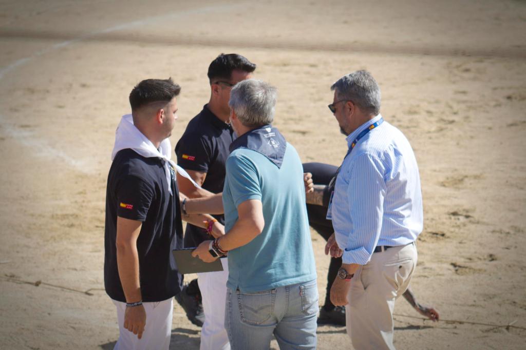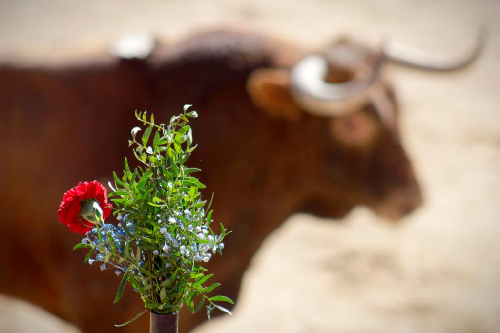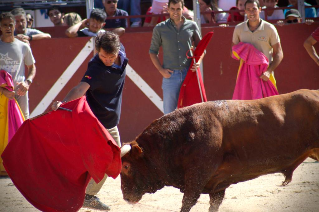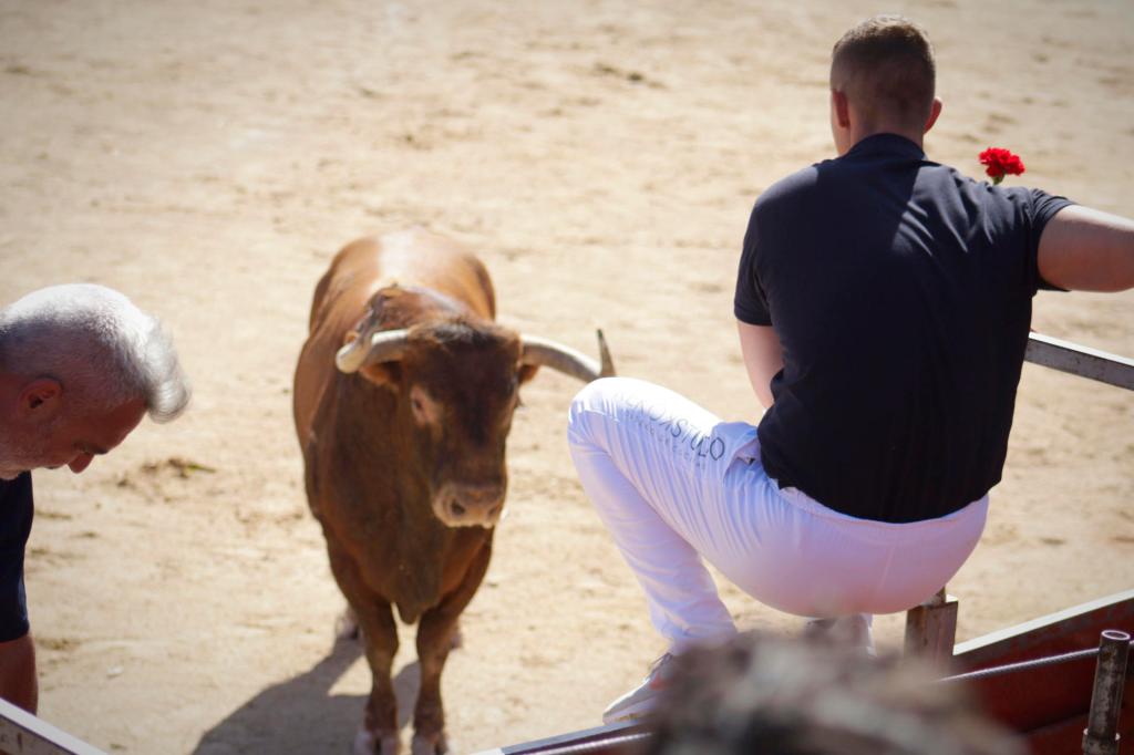 A «VIGÍA» aún le aguardaba un par de sorpresas más, confeti dorado a su salida de toriles, y una plaza engalanada con claveles en cada uno de sus postes que forman el ruedo. Y no faltó ese acto de profundo respeto y admiración hacia el toro que realizaron los participantes, arrodillándose ante él. Al igual que a Rafael Sandoval, representante taurino de esta ganadería, al cual se le hizo un reconocimiento con aplausos y paseíllo.